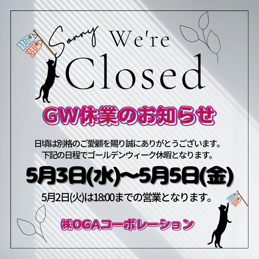 下記の日程でG.W休暇となります。